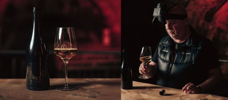What makes Untouched by Lightunique is its production process. The Untouched by Lightharvest, bottle rotation, and packing require the use of night vision goggles. The wine is left to age for two to three years in the Gornja Radgona cave in Slovenia, where it is untouched by the outside world, completely lightproof. In the jargon of Radgonske Gorice, this is known as the Crafted by Darkness method. Once out of the cave, the wine is protected in a 99% black glass bottle, packed in a vacuum-sealed bag blocking any additional light or air contact. Untouched by Light is made from the best Chardonnay grapes (Blanc de Blancs) using the inside-the-bottle fermentation method.
